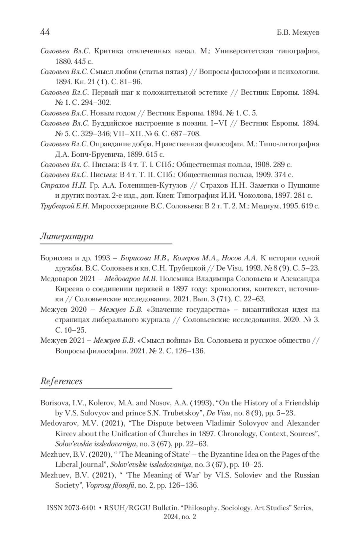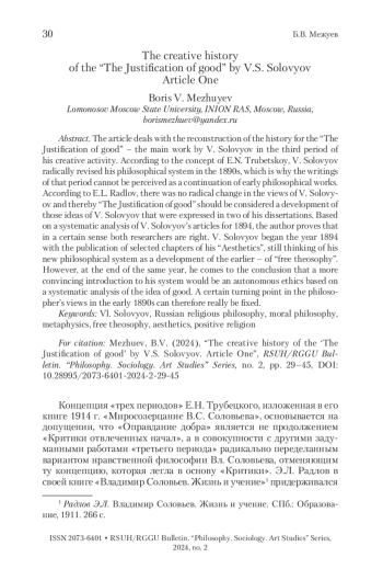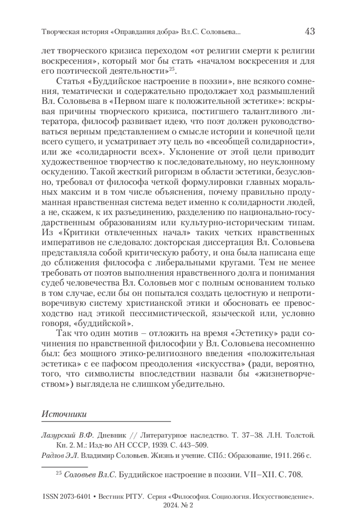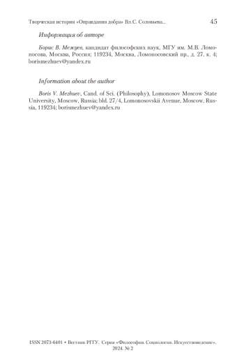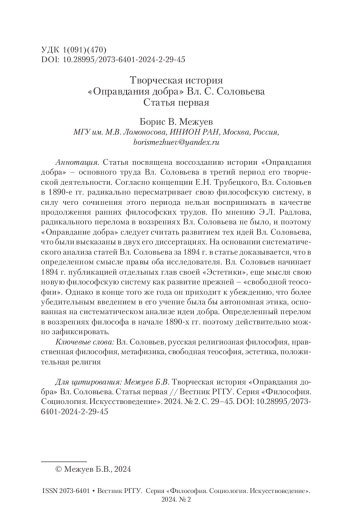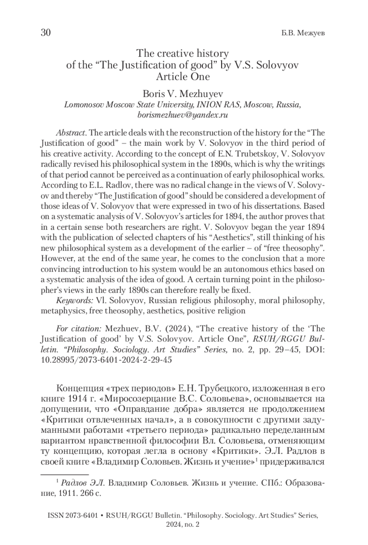 МЕЖУЕВ Б. В. ТВОРЧЕСКАЯ ИСТОРИЯ «ОПРАВДАНИЯ ДОБРА» ВЛ. С. СОЛОВЬЕВА. СТАТЬЯ ПЕРВАЯ // ВЕСТНИК РГГУ. СЕРИЯ: ФИЛОСОФИЯ. СОЦИОЛОГИЯ. ИСКУССТВОВЕДЕНИЕ. 2024. № 2