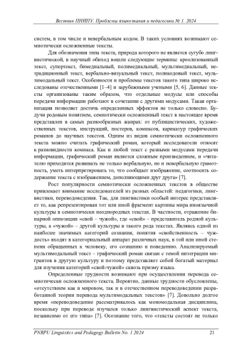 Ключевые фразы: МУЛЬТИМОДАЛЬНЫЙ ТЕКСТ, мультимодальный анализ, ПЕРЕВОД, графический роман, категория "свой-чужой"