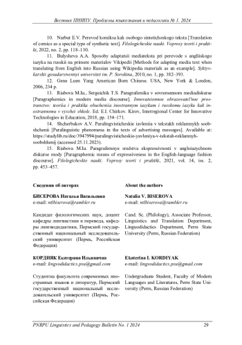 Журнал: ВЕСТНИК ПЕРМСКОГО НАЦИОНАЛЬНОГО ИССЛЕДОВАТЕЛЬСКОГО ПОЛИТЕХНИЧЕСКОГО УНИВЕРСИТЕТА. ПРОБЛЕМЫ ЯЗЫКОЗНАНИЯ И ПЕДАГОГИКИ