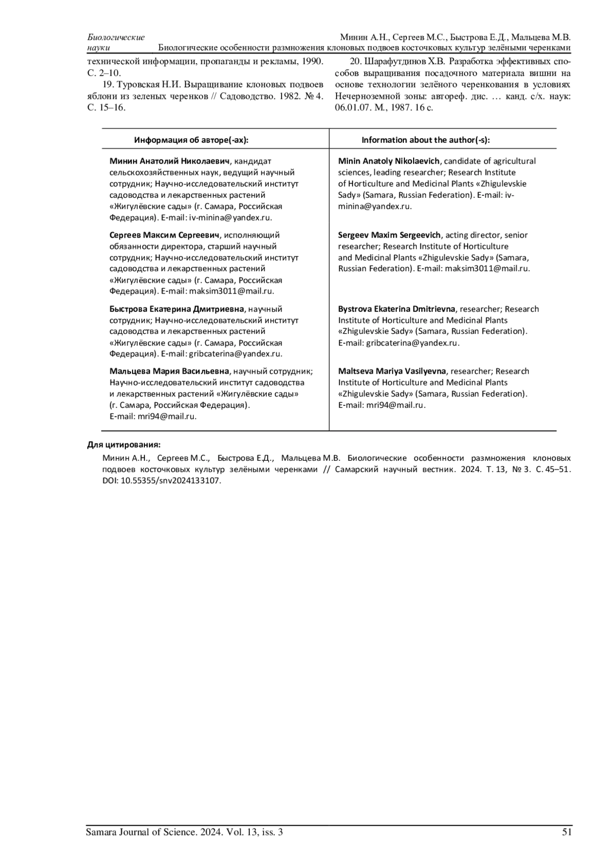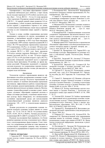 12. Минин А.Н. Зеленое черенкование сортов и подвоев вишни в Среднем Поволжье // Технология размножения и новые сорта вишни в РСФСР: сб. М., 1989. С. 24-27.