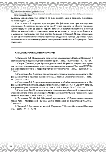 Попов А.Д., диак., Топорова А.К. Регент архимандрит Матфей (Мормыль) и его влияние на русское церковное пение // Вестник Омской православной духовной семинарии. - 2024. - №1 (16). - С.123-128.