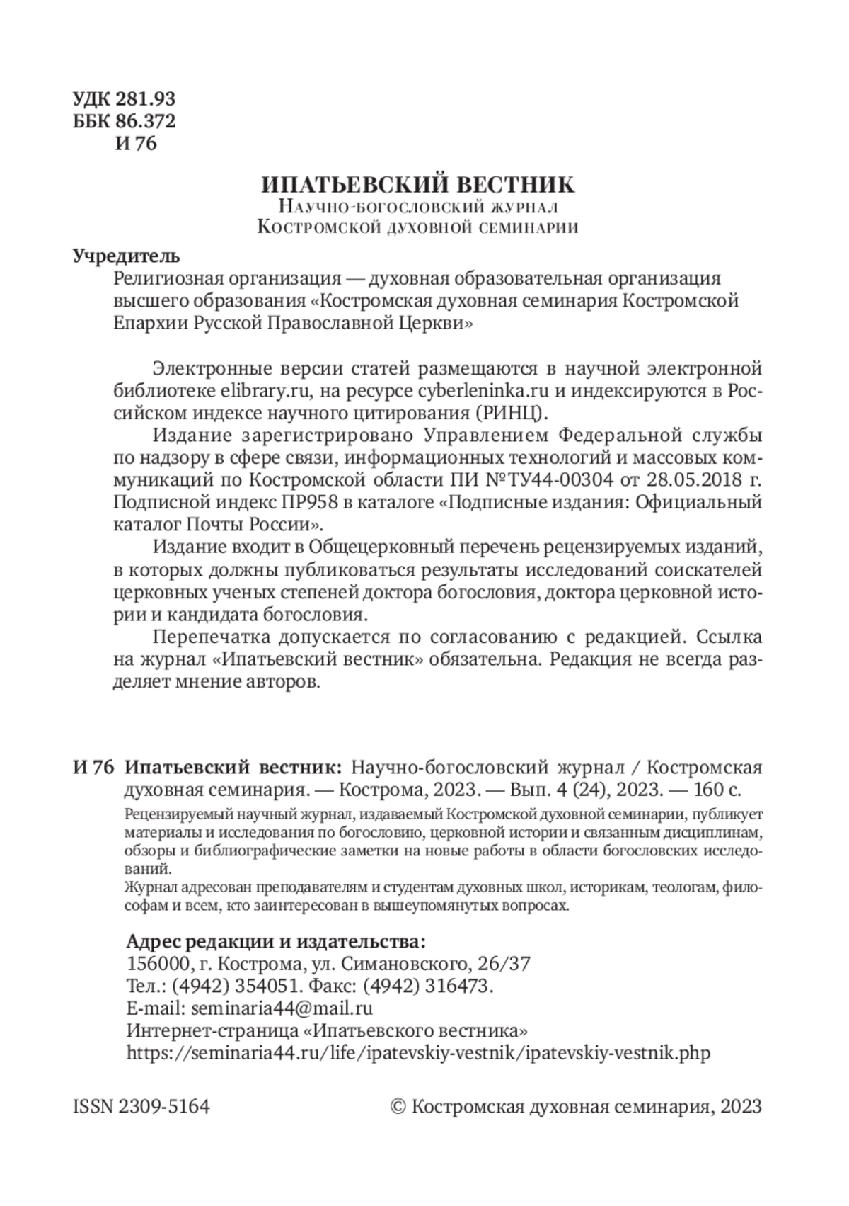 Попов А.Д., диак. Литургические заметки и отдельные прошения “Служебника” в последовании Божественной Литургии: отличие от практики начала XXI столетия // Ипатьевский вестник. - 2023. - №4. - С.25-34.