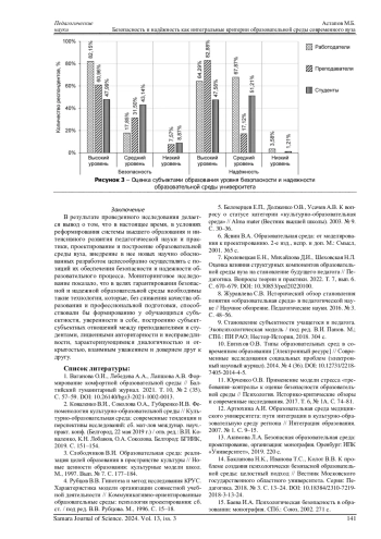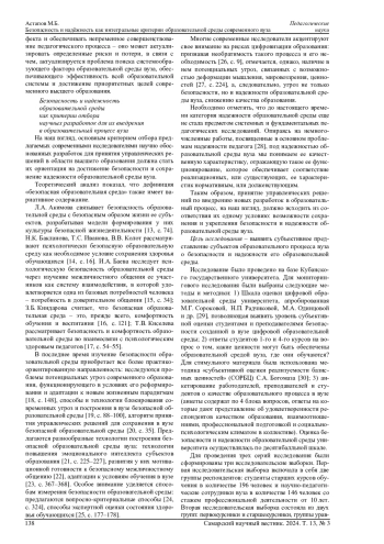 В данной статье рассматривается проблема построения в вузе безопасной и надежной образовательной среды, обеспечивающей не только безопасность субъектов образования, но и надежность всей образовательной системы функционирования образовательной организации высшего образования. Анализируются основные подходы к осмыслению сущности, содержания и структуры образовательной среды вуза, рассматриваются соотношения понятий безопасности, психологической безопасности, цифровой образовательной среды, проблемы их взаимовлияния и взаимообусловленности. Впервые безопасность и надежность образовательной среды рассмотрены в их взаимосвязи, как свойства единой образовательной системы, обеспечивающей эффективность функционирования организации высшего образования в период ее реформирования и необходимое условие для сохранения и повышения его качества. В статье представлены результаты мониторингового исследования удовлетворенности субъектов образования (студентов, научно-педагогических работников и работодателей) образовательной средой вуза, оценок ее безопасности и надежности, отношения к внедрению в систему учебно-воспитательного процесса нововведений, обусловленных необходимостью отклика на вызовы современности и отражающих передовые научные разработки отечественной педагогики, соотнесенные с диалектическим единством необходимости достижения мобильности системы высшего образования, ее гибкости и открытости новым тенденциям и одновременно обеспечения ее устойчивости и надежности в достижении приоритетных образовательных целей.
