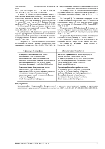 23. Брызгалина Е.В., Станченко С.В. Воспитание как образовательный результат: ценностно-ориентированный подход к оцениванию в системе общего образования // Вестник Российского университета дружбы народов. Серия: Философия. 2021. Т. 25, № 4. С. 574-588. DOI: 10.22363/2313-2302-2021-25-4-574-588 EDN: GAKRGS