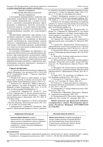 8. Đorđević J.N. Developing methodology for identifying giftedness in visual art expression domain in preschool age // Science International Journal. 2023. Vol. 2, iss. 4. P. 179-179. DOI: 10.35120/sciencej0204173d EDN: OAENEZ