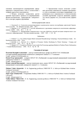 2. Киричек А. В., Соловьев Д. Л. Способы динамического упрочнения поверхности пластическим деформированием // КШП. - 2001. - № 2. - С. 28 - 33.