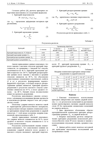 В статье приведено определение синергетических критериев разрушения, предложенных В. А. Скудновым, а также влияние термической обработки стали 45 на значения данных критериев.