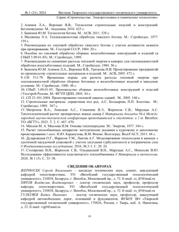 4. Малинина Л.A. Тепловлажностная обработка тяжелого бетона. М.: Стройиздат, 1977. 159 с.