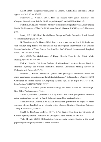 22. Land J. (2020). Indigenous video games. In: Lopez L. K. (ed.), Race and media: Critical approaches. Vol. 92, pp. 92-100.