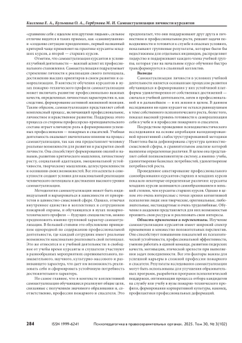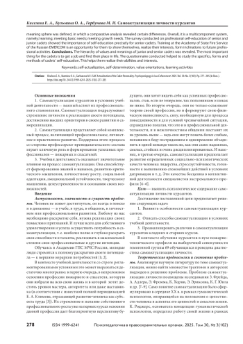1. Самоактуализация курсантов в условиях учебной деятельности — важный аспект их профессионального становления. Самоактуализация подразумевает стремление личности к реализации своего потенциала, достижению высших ориентиров в своем развитии и самореализации.