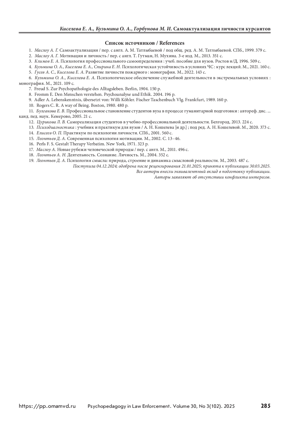 1. Маслоу А. Г. Самоактуализация / пер. с англ. А. М. Татлыбаевой / под общ. ред. A. M. Татлыбаевой. СПб., 1999. 379 с.