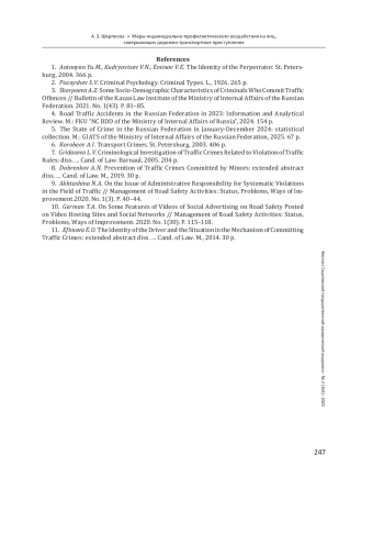 Статья: МЕРЫ ИНДИВИДУАЛЬНО-ПРОФИЛАКТИЧЕСКОГО ВОЗДЕЙСТВИЯ НА ЛИЦ, СОВЕРШАЮЩИХ ДОРОЖНО-ТРАНСПОРТНЫЕ ПРЕСТУПЛЕНИЯ (2025)