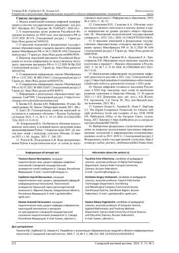 интеллекта и анализа данных в курсе информатики на уровне среднего общего образования. М.: Московский педагогический государственный университет, 2022. 242 с. DOI: 10.31862/9785426310643 EDN: BACMCW