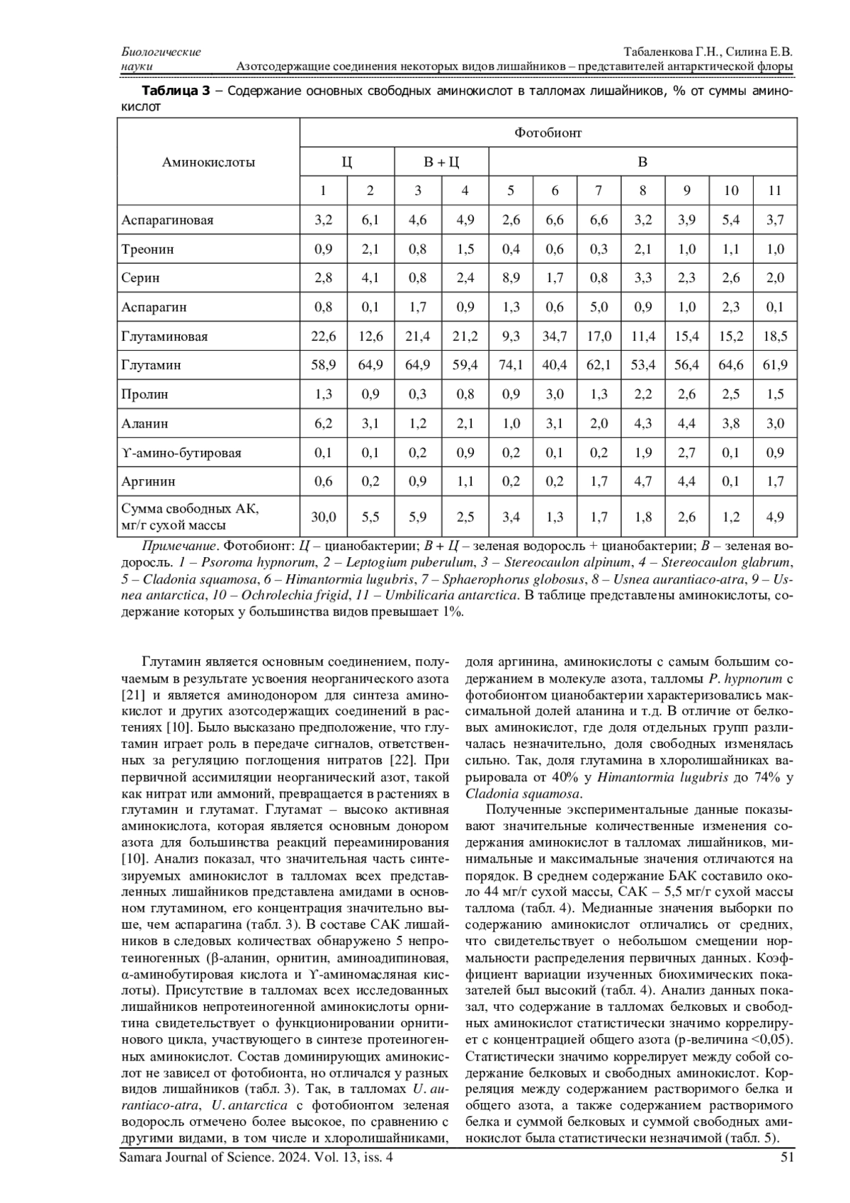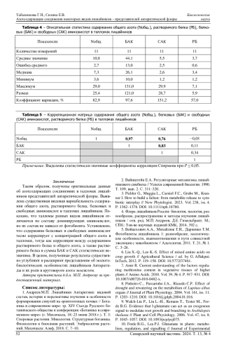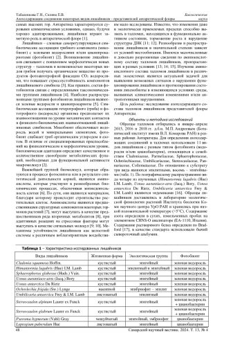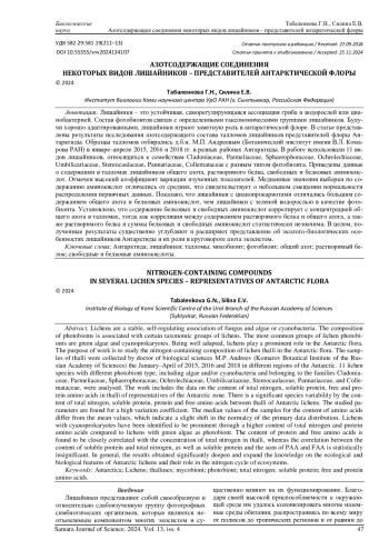 Статья: АЗОТСОДЕРЖАЩИЕ СОЕДИНЕНИЯ НЕКОТОРЫХ ВИДОВ ЛИШАЙНИКОВ - ПРЕДСТАВИТЕЛЕЙ АНТАРКТИЧЕСКОЙ ФЛОРЫ (2024)