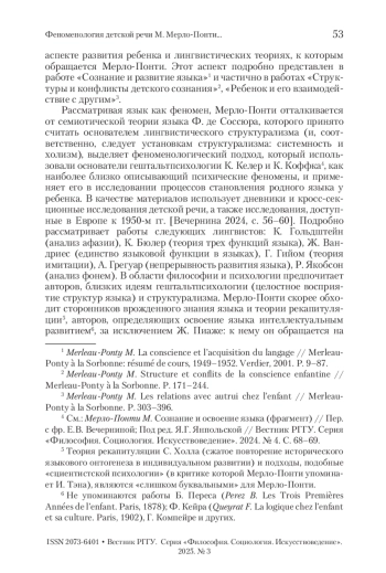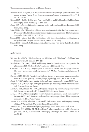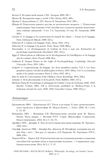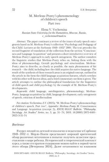 ВЕЧЕРНИНА Е. В. ФЕНОМЕНОЛОГИЯ ДЕТСКОЙ РЕЧИ М. МЕРЛО-ПОНТИ. ЧАСТЬ ВТОРАЯ // ВЕСТНИК РГГУ. СЕРИЯ: ФИЛОСОФИЯ. СОЦИОЛОГИЯ. ИСКУССТВОВЕДЕНИЕ. 2025. № 3