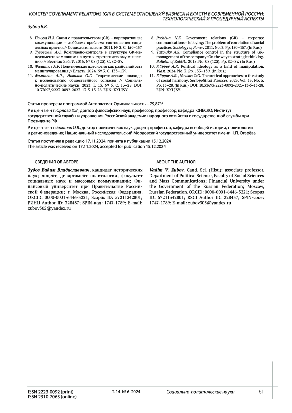 1. Шатилов А.Б., Никитин А.С. GR для эффективного бизнеса. М.: ИНФРА-М, 2024. 143 с.