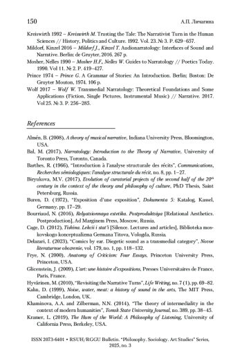 27. Wolf 2017 - Wolf W. Transmedial Narratology: Theoretical Foundations and Some Applications (Fiction, Single Pictures, Instrumental Music) // Narrative. 2017. Vol 25. № 3. P. 256-285.