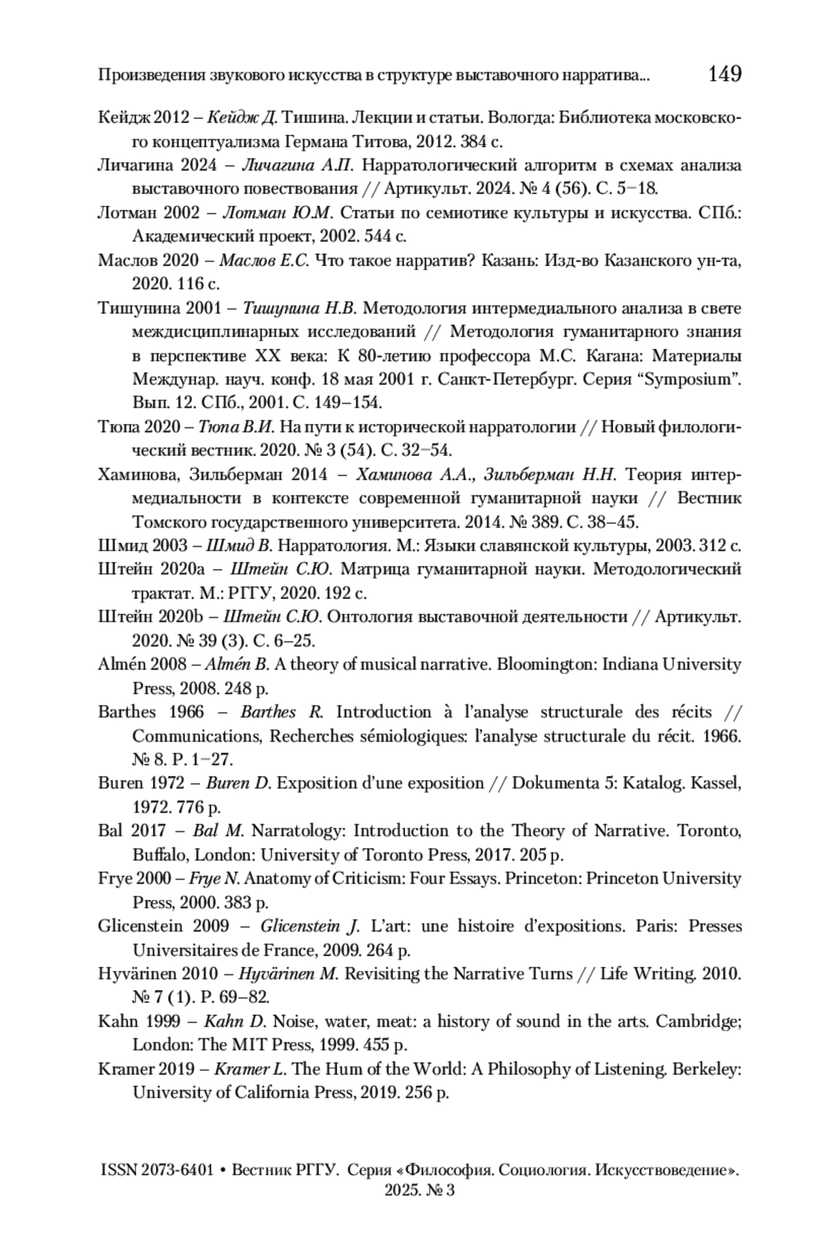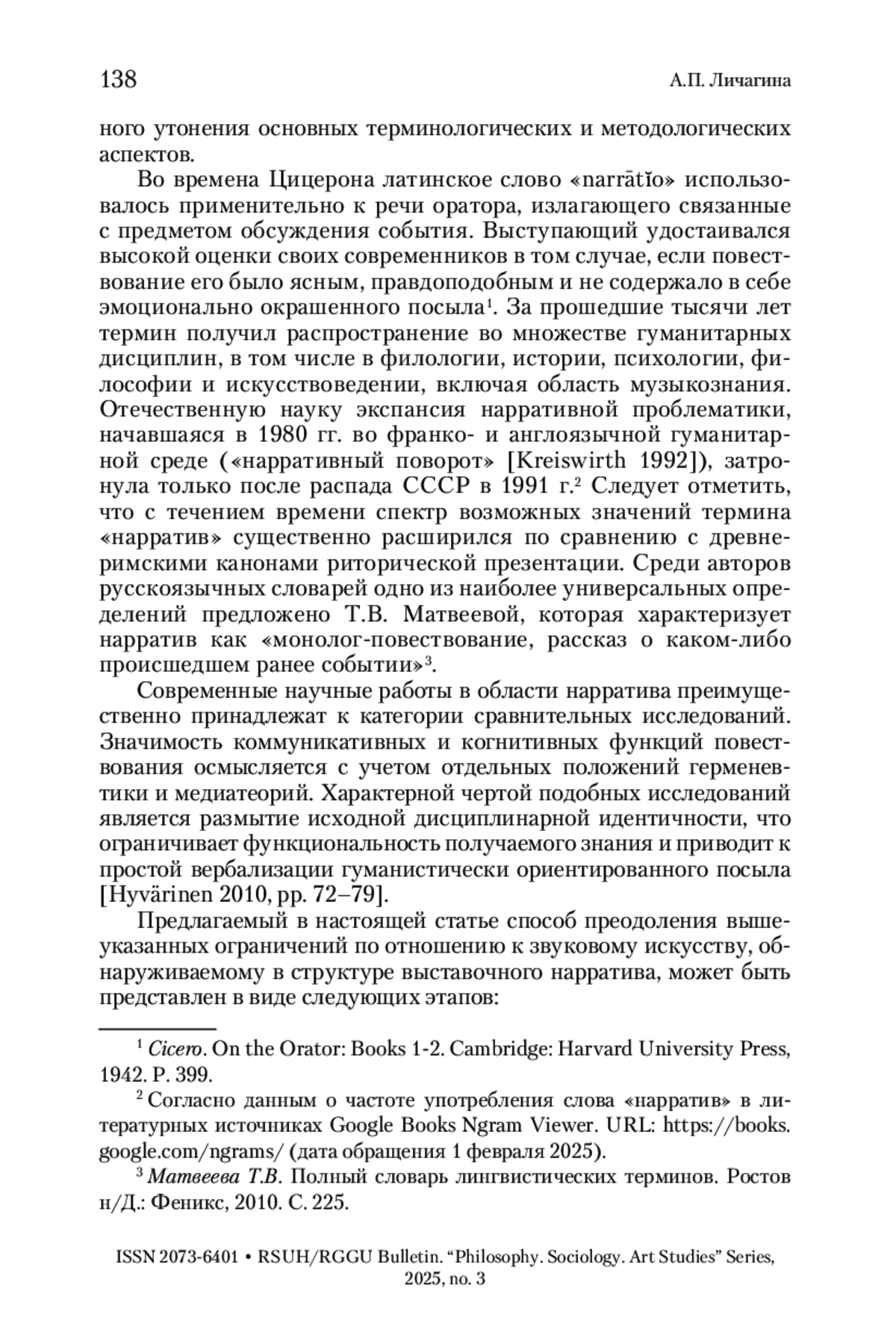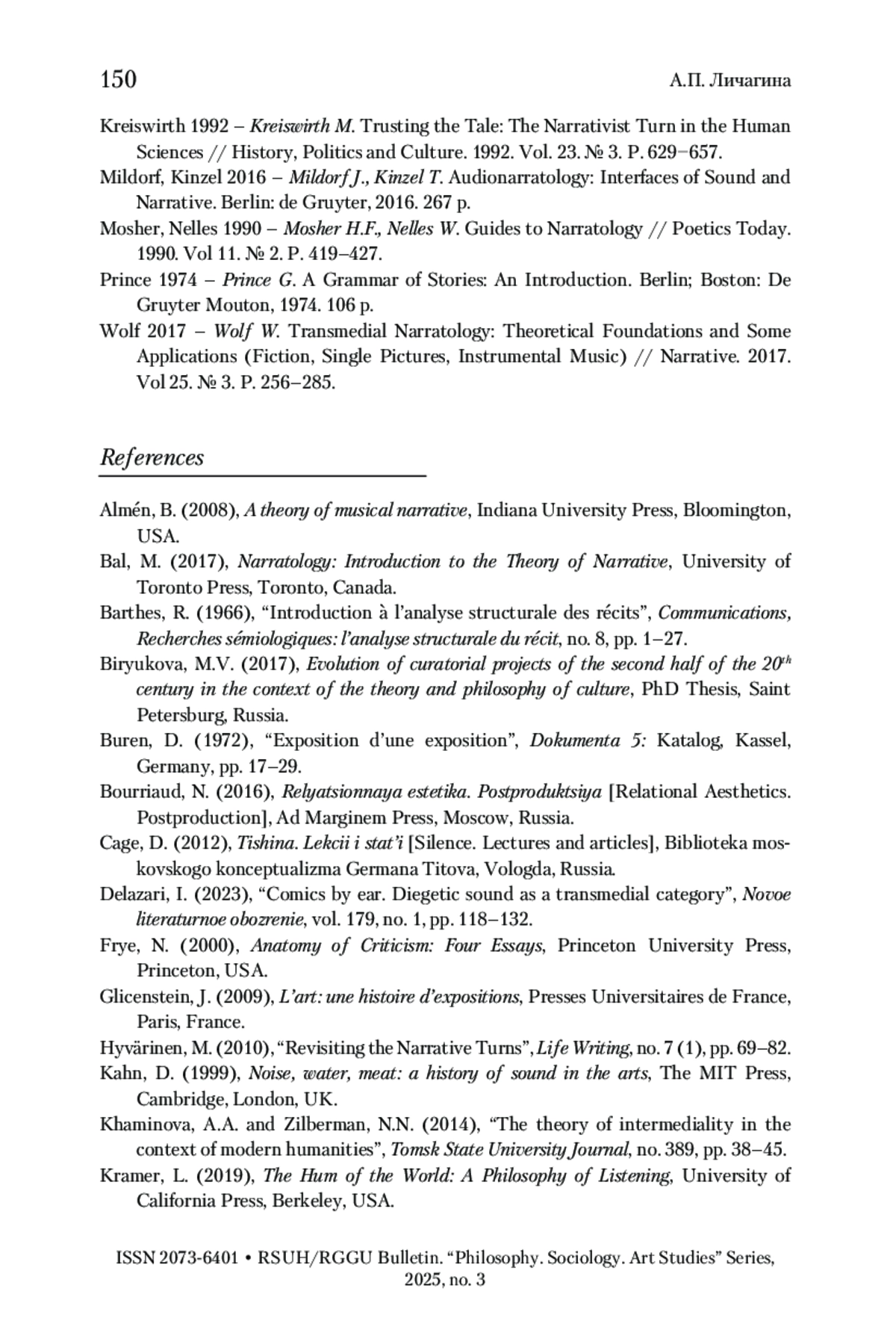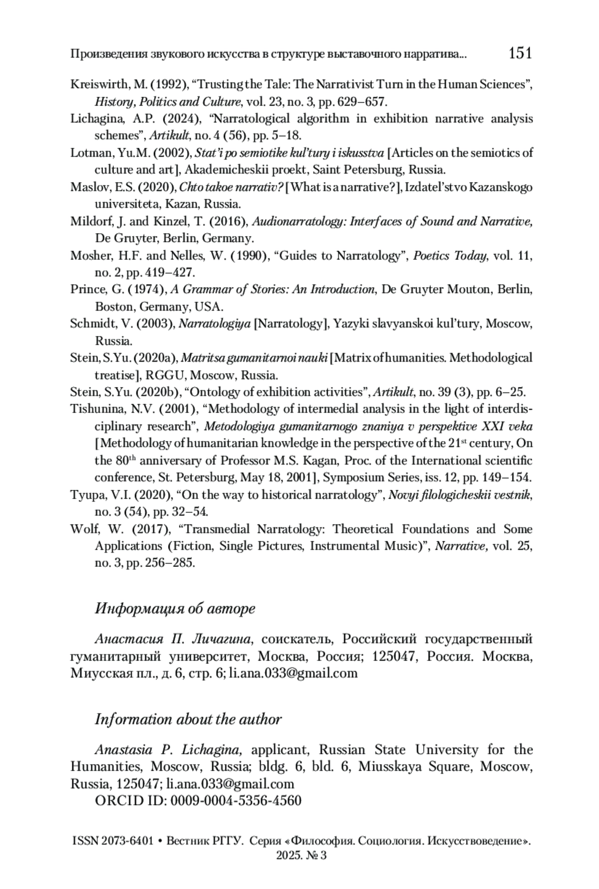 5. Личагина 2024 - Личагина А.П. Нарратологический алгоритм в схемах анализа выставочного повествования // Артикульт. 2024. № 4 (56). С. 5−18.
