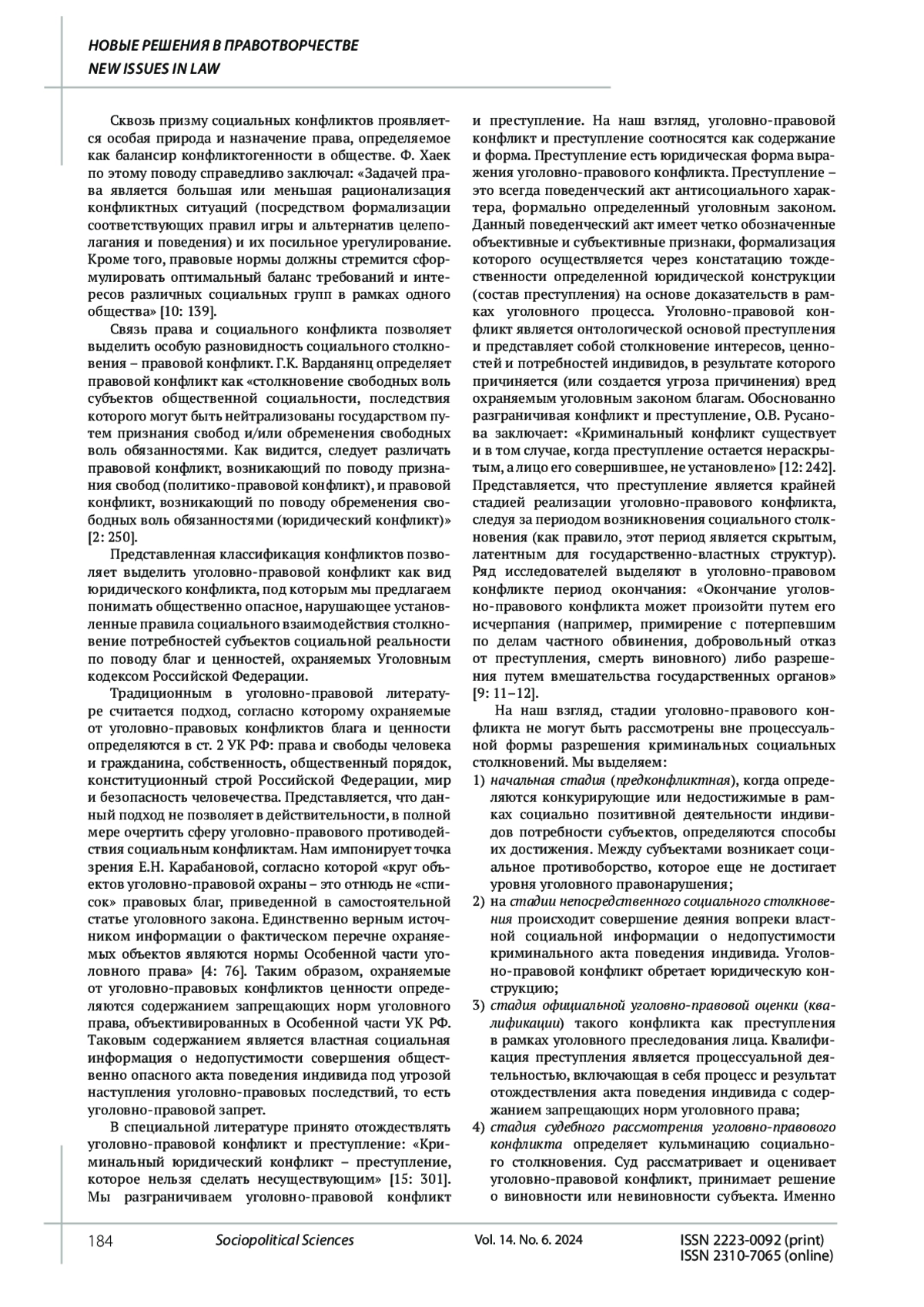 12. Русанова О.В. О понятии уголовно-процессуальный конфликтов // Вестник ВГУ. Серия: Право. 2015. № 3. EDN: VVSKVN