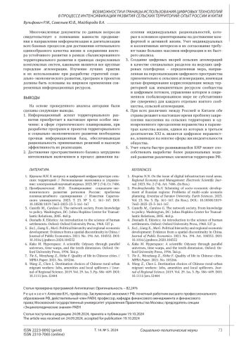 1. Крупина Н.Н. К вопросу и цифровой инфраструктуре сельских территорий // Региональная экономика и управление: электронный научный журнал. 2023. № 2 (74). Ст. 7406. EDN: MIAKZD