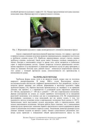 Статья: ТЕОРЕТИЧЕСКОЕ ОБОСНОВАНИЕ РАЦИОНАЛЬНЫХ ПАРАМЕТРОВ ТОРФЯНОГО КУСКА ТРУБЧАТОЙ ФОРМЫ (2025)