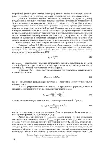 Ключевые фразы: кусковой торф, прочность на изгиб, трубчатая форма поперечного сечения куска, ИЗГИБАЮЩИЙ МОМЕНТ, толщина стенки куска, время сушки куска, разрушающая нагрузка