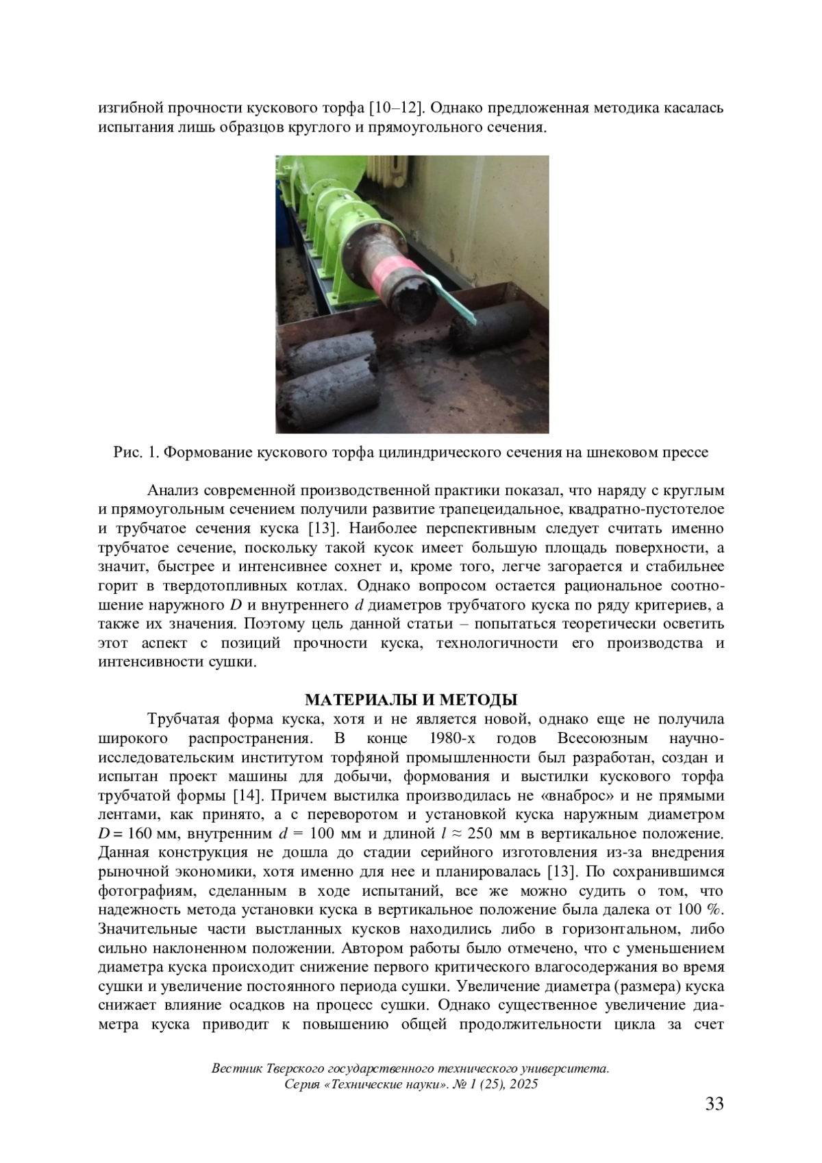 ЯБЛОНЕВ А. Л. ТЕОРЕТИЧЕСКОЕ ОБОСНОВАНИЕ РАЦИОНАЛЬНЫХ ПАРАМЕТРОВ ТОРФЯНОГО КУСКА ТРУБЧАТОЙ ФОРМЫ // ВЕСТНИК ТВЕРСКОГО ГОСУДАРСТВЕННОГО ТЕХНИЧЕСКОГО УНИВЕРСИТЕТА. СЕРИЯ: ТЕХНИЧЕСКИЕ НАУКИ. 2025. № 1 (25)