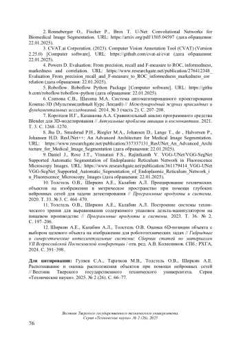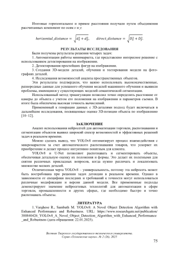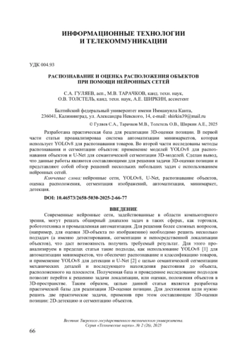 ГУЛЯЕВ С. А., ТАРАЧКОВ М. В., ТОЛСТЕЛЬ О. В., ШИРКИН А. Е. РАСПОЗНАВАНИЕ И ОЦЕНКА РАСПОЛОЖЕНИЯ ОБЪЕКТОВ ПРИ ПОМОЩИ НЕЙРОННЫХ СЕТЕЙ // ВЕСТНИК ТВЕРСКОГО ГОСУДАРСТВЕННОГО ТЕХНИЧЕСКОГО УНИВЕРСИТЕТА. СЕРИЯ: ТЕХНИЧЕСКИЕ НАУКИ. 2025. № 2 (26)