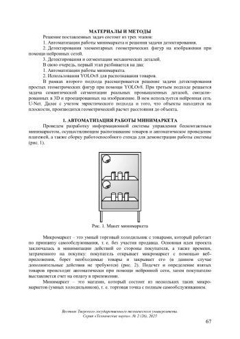 Ключевые фразы: нейронные сети, yolov8, u-net, РАСПОЗНАВАНИЕ ОБЪЕКТОВ, оценка расположения, сегментация изображений, автоматизация, минимаркет, детекция
