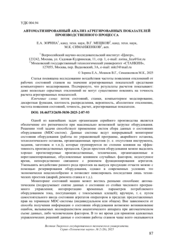 Статья: АВТОМАТИЗИРОВАННЫЙ АНАЛИЗ АГРЕГИРОВАННЫХ ПОКАЗАТЕЛЕЙ ПРОИЗВОДСТВЕННОГО ПРОЦЕССА (2025)