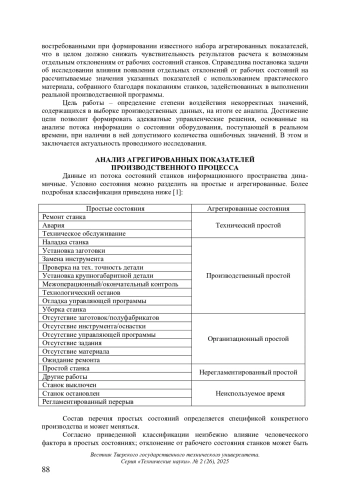 ЗОРИНА Е. А., МЕШКОВ В. Г., СИМАНЖЕНКОВ М. К. АВТОМАТИЗИРОВАННЫЙ АНАЛИЗ АГРЕГИРОВАННЫХ ПОКАЗАТЕЛЕЙ ПРОИЗВОДСТВЕННОГО ПРОЦЕССА // ВЕСТНИК ТВЕРСКОГО ГОСУДАРСТВЕННОГО ТЕХНИЧЕСКОГО УНИВЕРСИТЕТА. СЕРИЯ: ТЕХНИЧЕСКИЕ НАУКИ. 2025. № 2 (26)