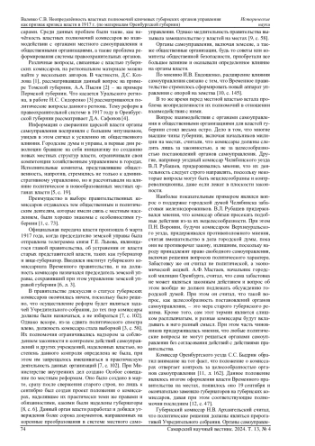 16. Соборнов П.Н. Проблемы организации регионального управления в протоколах совещаний губернских и уездных комиссаров Временного правительства (март-октябрь 1917 г.) // Известия высших учебных заведений. Поволжский регион. Гуманитарные науки. 2024. № 1 (69). С. 33-41. DOI: 10.21685/2072-3024-2024-1-4 EDN: UZIPKO