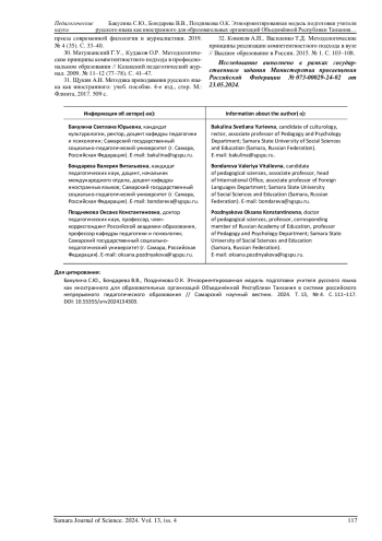 7. Чуксина И.Г. Этноориентированный подход в практике обучения русскому языку иностранных студентов // Известия Балтийской государственной академии рыбопромыслового флота: психолого-педагогические науки. 2018. № 3 (45). С. 64-70. EDN: YCKLID