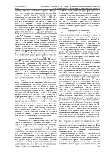 В статье обосновывается фундаментальный характер естественнонаучного знания и роль естественнонаучной подготовки в становлении будущего педагога. Подчеркивается, что естественнонаучное знание не только влияет на научно-технический потенциал общества, но и формирует картину мира, позволяя найти правильные ответы на социально и лично значимые вопросы. Особенно важна естественнонаучная подготовка будущих учителей, так как она поможет им в будущем сформировать правильную картину мира своих учеников. Обобщая опыт естественнонаучной подготовки студентов-гуманитариев, полученный в Самарском социально-педагогическом университете, авторы раскрывают основные теоретико-методологические проблемы естественнонаучного образования (несоответствие содержания изучаемого материала актуальной научной картине мира, непонимание гуманитариями важности естественнонаучного знания, низкий интерес студентов-гуманитариев к естественным наукам в целом, малое количество часов для естественнонаучной подготовки). Авторы сделали вывод о необходимости поиска новых подходов в естественнонаучном образовании студентов - будущих учителей. В процессе исследования применялись такие методы, как анализ научно-педагогической литературы, педагогическое наблюдение, сравнение, обобщение. Результаты педагогического исследования могут быть использованы в образовательном процессе высшей педагогической школы, в процессе повышения квалификации работников образования.