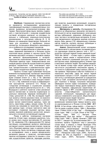 Статья: Социолингвистические проекты типа «Языковая единица года»: типология и динамика развития (2024)