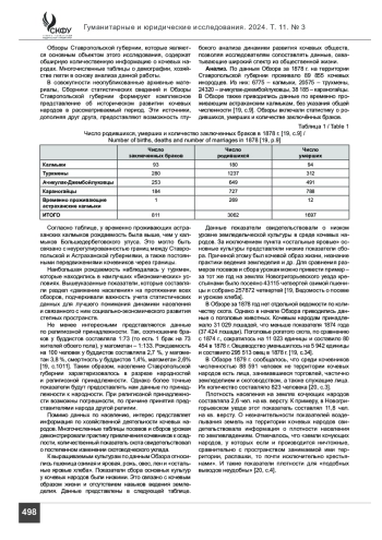 Материалы и методы. Исследование базируется на анализе обширных материалов Обзоров Ставропольской губернии, на основе принципов историзма, системном анализе, компаративном методе, позволившие рассмотреть ключевые аспекты социально-экономического развития кочевых народов в указанный период.
