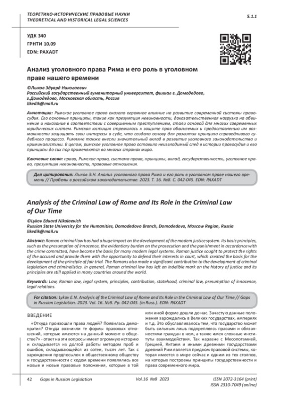 Skoropupov Yu. I. On the issue of the meaning of the presumption of innocence in criminal proceedings // News of Tula State University. Economic and legal sciences. 2019. No. 1-2. EDN: DQJTEY