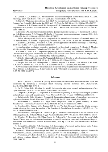9. Cornish M.L., Critchley A.T., Mouritsen O.G. Seaweed consumption and the human brain // J. Appl. Phycology. 2017. Vol. 29. No. 5. Pp. 2377-2398. DOI: 10.1007/s10811-016-1049-3