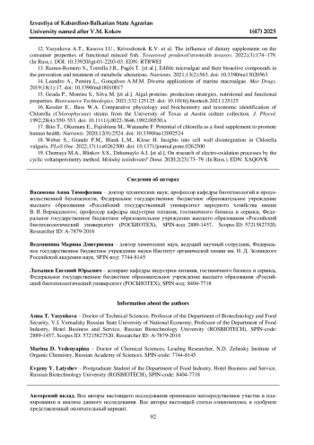 15. Algal proteins: production strategies, nutritional and functional properties / P. Geada, S. Moreira, M. Silva [et al.] // Bioresource Technologies 2021. Vol. 332. P. 125125. DOI: 10.1016/j.biortech.2021.125125