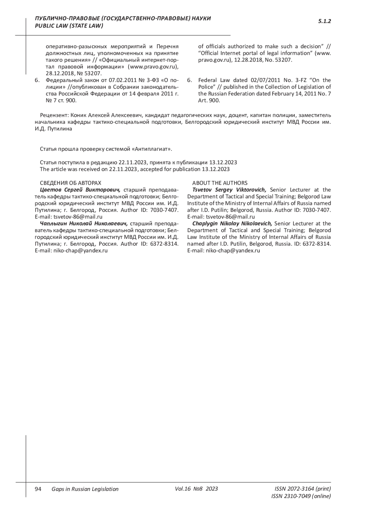 Petrov I.V. The problem of the system of basic concepts and terms in the field of security and operational-search activities//Military Law Journal. 2011. № 11. S. 14-18.