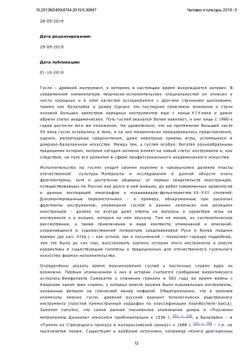 5. Вертков К. А. Русские народные музыкальные инструменты. Л.: Музыка, Ленинградское отделение, 1975. 280 с. 10.25136/2409-8744.2019.5.30847 Человек и культура, 2019 - 5 2