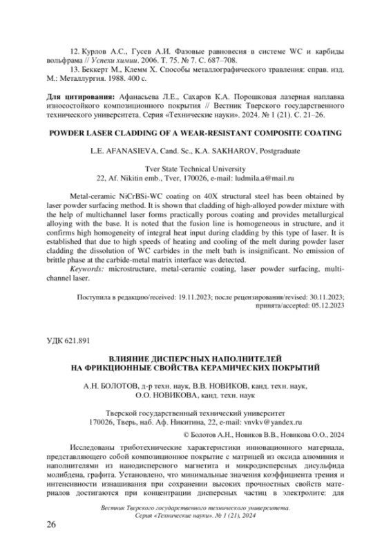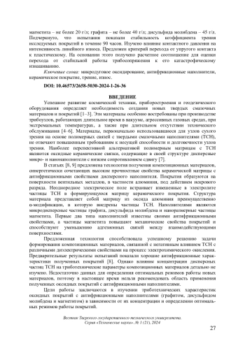 Статья: ВЛИЯНИЕ ДИСПЕРСНЫХ НАПОЛНИТЕЛЕЙ НА ФРИКЦИОННЫЕ СВОЙСТВА КЕРАМИЧЕСКИХ ПОКРЫТИЙ (2024)