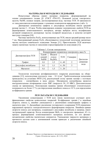 Ключевые фразы: микродуговое оксидирование, антифрикционные наполнители, керамическое покрытие, ТРЕНИЕ, износ