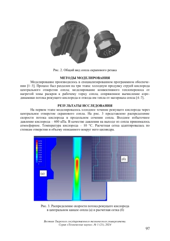 В статье представлены основные результаты CAE-моделирования температурных процессов, происходящих в сопле скрапового резака при раскрое скрапа толщиной более 800 мм. Показано распределение температуры в теле сопла при его охлаждении струей режущего кислорода. Рассмотрены особенности создания расчетных моделей теплопереноса с поверхности скрапа на рабочий торец сопла, а также проведены сопряженные вычисления температурных полей в теле сопла при холодной продувке струей режущего кислорода центрального канала.