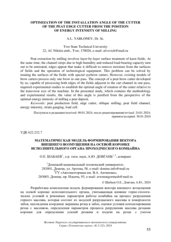 3. Семенченко А.К., Шабаев О.Е., Семенченко Д.А., Хиценко Н.В. Математическая модель вектора внешнего возмущения на аксиальной коронке проходческого комбайна // Науковi працi ДонНТУ. Серiя гiрничо-електромеханiчна. 2006. Вип. 104. С. 198-205.