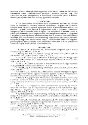 24. Яблонев А.Л. Пневматический колесный ход и особенности его взаимодействия с торфяной залежью: монография. Тверь: ТвГТУ, 2011. 168 с. EDN: QMZBTV