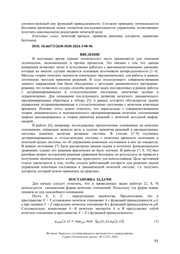 БОРОВИК В. В., ЕГЕРЕВА И. А., СМИРНОВА П. М. ПОСТРОЕНИЕ АЛГОРИТМА УПРАВЛЕНИЯ КОНЕЧНЫМ СОСТОЯНИЕМ НЕЧЕТКОЙ ДИНАМИЧЕСКОЙ СИСТЕМЫ // ВЕСТНИК ТВЕРСКОГО ГОСУДАРСТВЕННОГО ТЕХНИЧЕСКОГО УНИВЕРСИТЕТА. СЕРИЯ: ТЕХНИЧЕСКИЕ НАУКИ. 2024. № 3 (23)