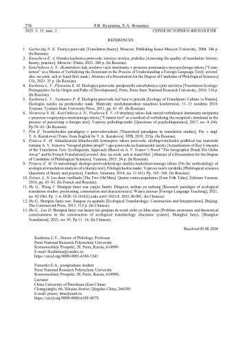 4. Кушнина Л. В., Плюснина Е. М. Экология перевода: предпосылки зарождения и пути развития. Пермь: ПГНИУ, 2016. 156 с.