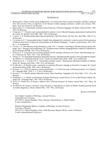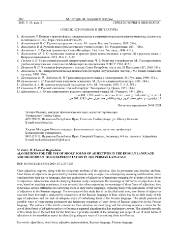 Статья: АЛГОРИТМЫ УПОТРЕБЛЕНИЯ КРАТКИХ ФОРМ ПРИЛАГАТЕЛЬНЫХ РУССКОГО ЯЗЫКА И СПОСОБЫ ИХ РЕПРЕЗЕНТАЦИИ В ПЕРСИДСКОМ ЯЗЫКЕ (2025)