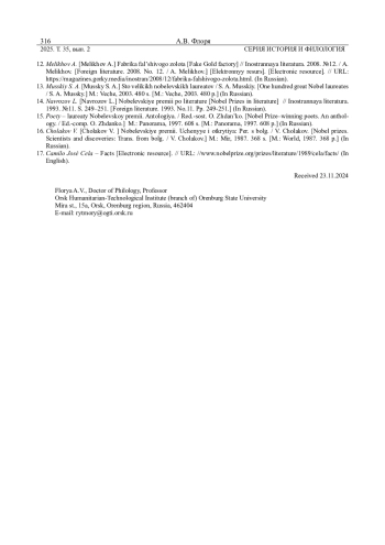 11. Марченко Т. В. Русская литература в зеркале Нобелевской премии. М.: Издательский центр “Азбуковник”, 2017. 671 с. EDN: KQHZSL